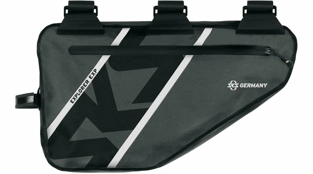 L’ EXPLORATEUR EXP. FRAMEBAG offre un espace de stockage de 4 litres sans affecter la manipulation. Veste, kit de réparation ou provisions peuvent être transportés au sec et à l’abri de la saleté grâce à la matière imperméable avec zips soudés. Les compartiments supplémentaires pour les outils ou les mini-pompes, comme le SKS AIRFLEX EXPLORER, sont accessibles d’une seule main. Grâce aux sangles caoutchoutées avec de solides fermetures velcro, une fixation douce et réglable individuellement au cadre est possible. Le sac est également conçu de manière à ce que, selon la géométrie, un porte-bouteille avec une bouteille puisse facilement être logé dans le triangle du cadre. Le matériau solide au design SKS mat/brillant permet à l’eau de s’écouler facilement. En même temps, des bandes réfléchissantes assurent la sécurité dans l’obscurité.